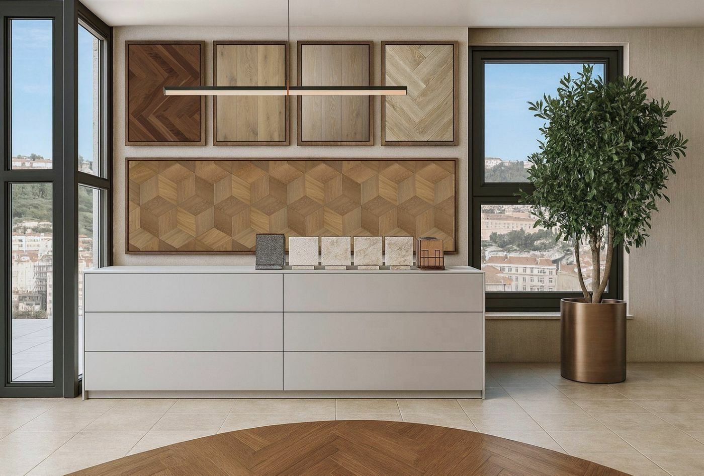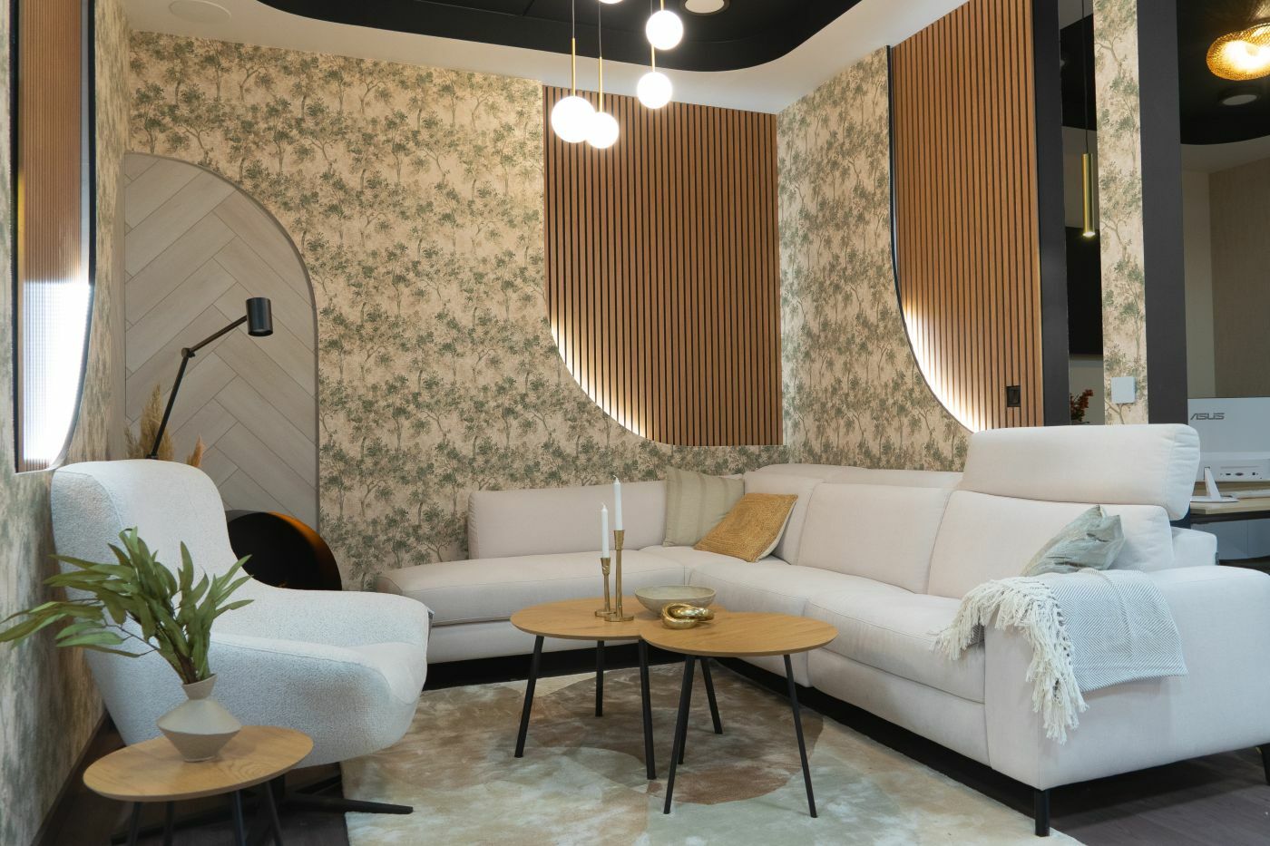 A showroom tereiben kialakított enteriőr szigetek – nappali, konyha, home office vagy épp lobby inspiráció – élményszerű módon mutatják be a termékek valós térben való működését. Ezek a szituációk nemcsak az ügyfeleket inspirálják, de konstruktív párbeszédet indítanak el a tervezők, kivitelezők és megrendelők között.